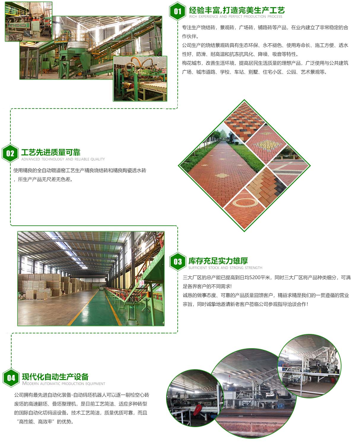 專(zhuān)注生產(chǎn)燒結(jié)磚,景觀(guān)磚,廣場(chǎng)磚,鋪路磚等產(chǎn)品,在業(yè)內(nèi)建立了非常穩(wěn)定的合作伙伴。 公司生產(chǎn)的燒結(jié)景觀(guān)磚具有生態(tài)環(huán)保、輕易不褪色、使用壽命長(zhǎng)、施工方便、透水性好、防滑、耐高溫和抗凍抗風(fēng)化、降噪、吸音等特性。 美化城市,改善生活環(huán)境,提高居民生活質(zhì)量的理想產(chǎn)品,廣泛使用與公共建筑廣場(chǎng)、城市道路、學(xué)校、車(chē)站、別墅、住宅小區(qū)、公園、藝術(shù)景觀(guān)等。